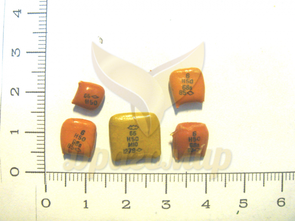 Конденсаторы постоянной емкости КМ имеют компактный монолитный керамический корпус. Выпускались различных цветов, в том числе рыжего (оранжевого) различных оттенков и зеленого. Параметр Н50 говорит о том, что при изменении температуры от -60 до +85 °C емкость конденсатора может измениться не более чем на 50%.