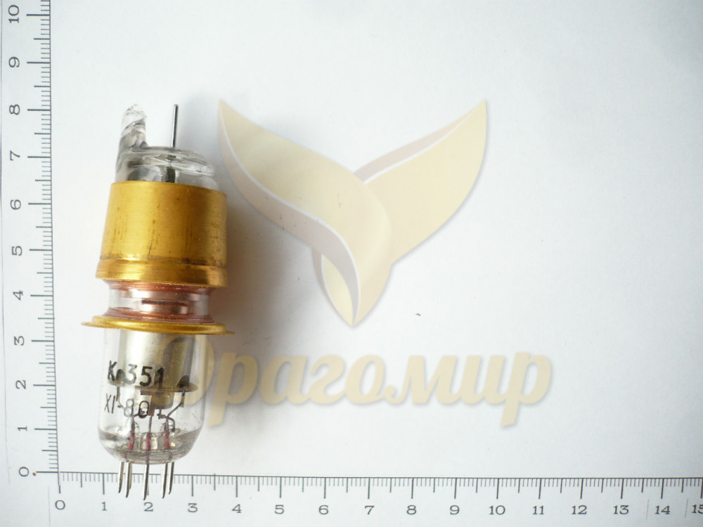 Отражательный клистрон К-351 работает в СВЧ-диапазоне, чаще всего используется в качестве гетеродина в приемниках и другой аппаратуре. Работает в диапазоне частот от 2654 до 3333 МГц. Имеет стеклянный корпус с дисковым и конусным выводами для подключения внешнего контура. Масса лампы составляет 35 гр. При изготовлении используется золото.