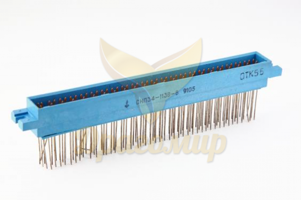 Соединитель прямоугольный ножевой печатного монтажа СНП 34-113 выпускался во времена СССР, имеет полимерный корпус с трехрядным расположением ламелей. Относится к числу самых дорогих благодаря золотой позолоте контактной группы. Состоит из розетки, монтируемой на плате, и ответной вилки. Каждый контакт выдерживает напряжение до 250 В и токовую нагрузку до 3 А.